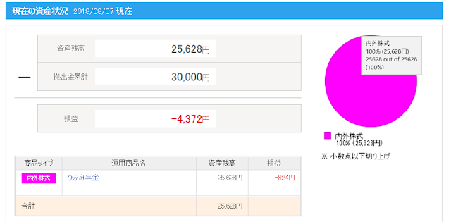 今月のひふみ年金の損益率は-3.1%624円のマイナスになります。